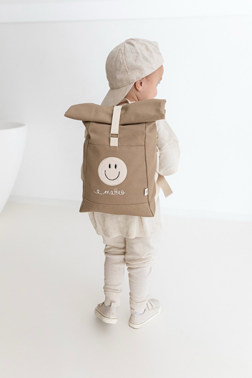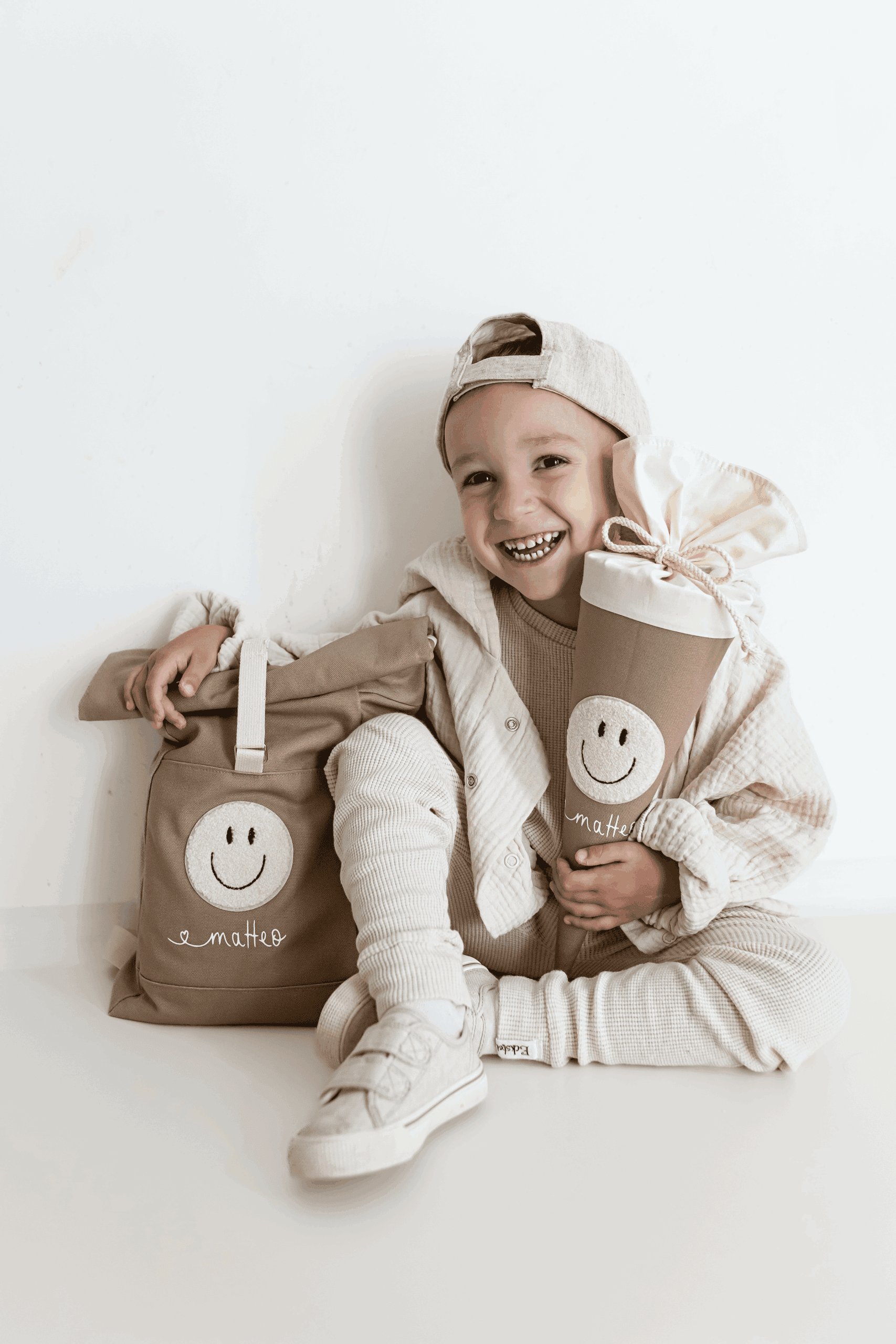 Hochwertige und robuste Materialien – waschbar – kinderleicht zu öffnen, leicht und kompakt und natürlich mit Namensaufdruck.