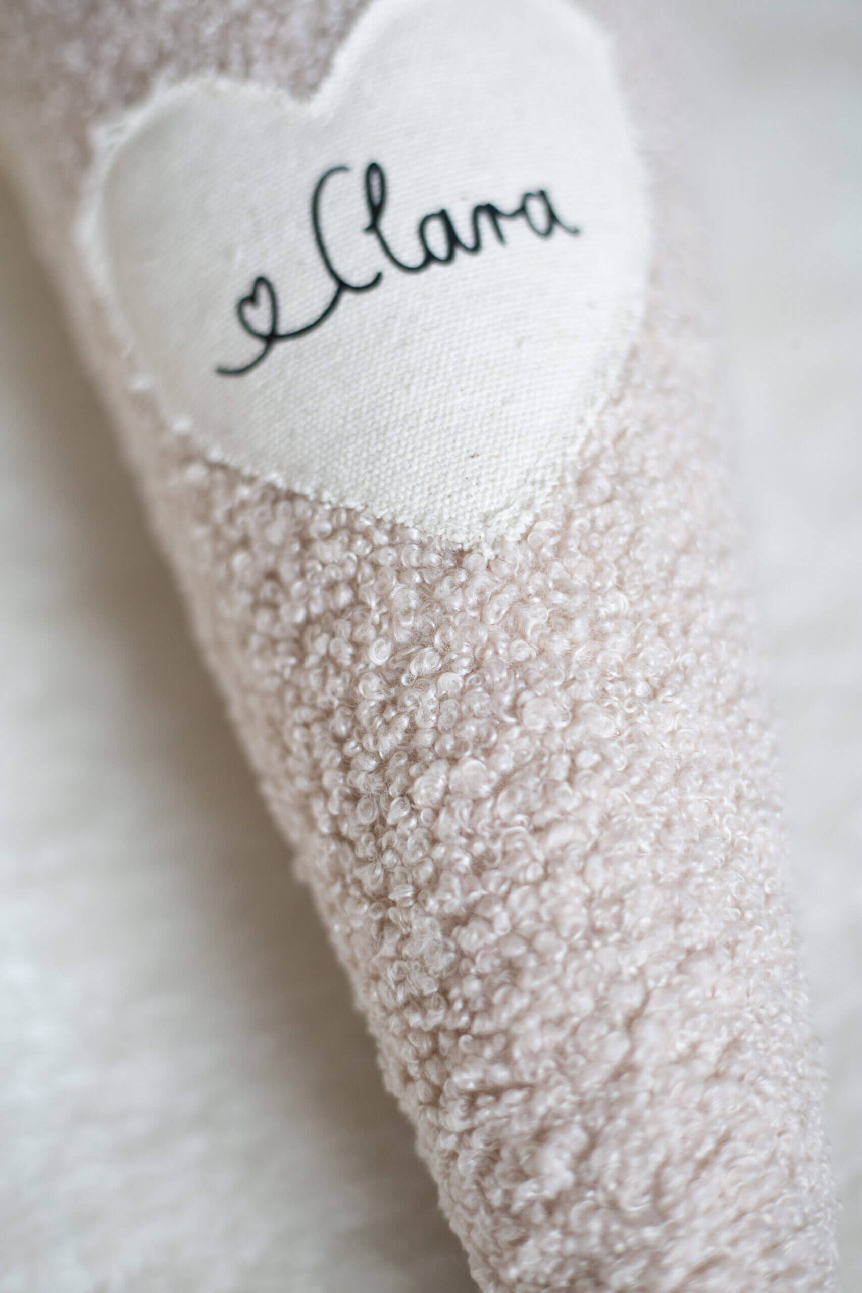 Die Personalisierung ist handgeschrieben und wird aufgebügelt. Ein echtes Unikat. Du möchtest die Schrift ohne Herz oder eine Alternative? Dann schreibe uns einfach – wir finden eine passende.