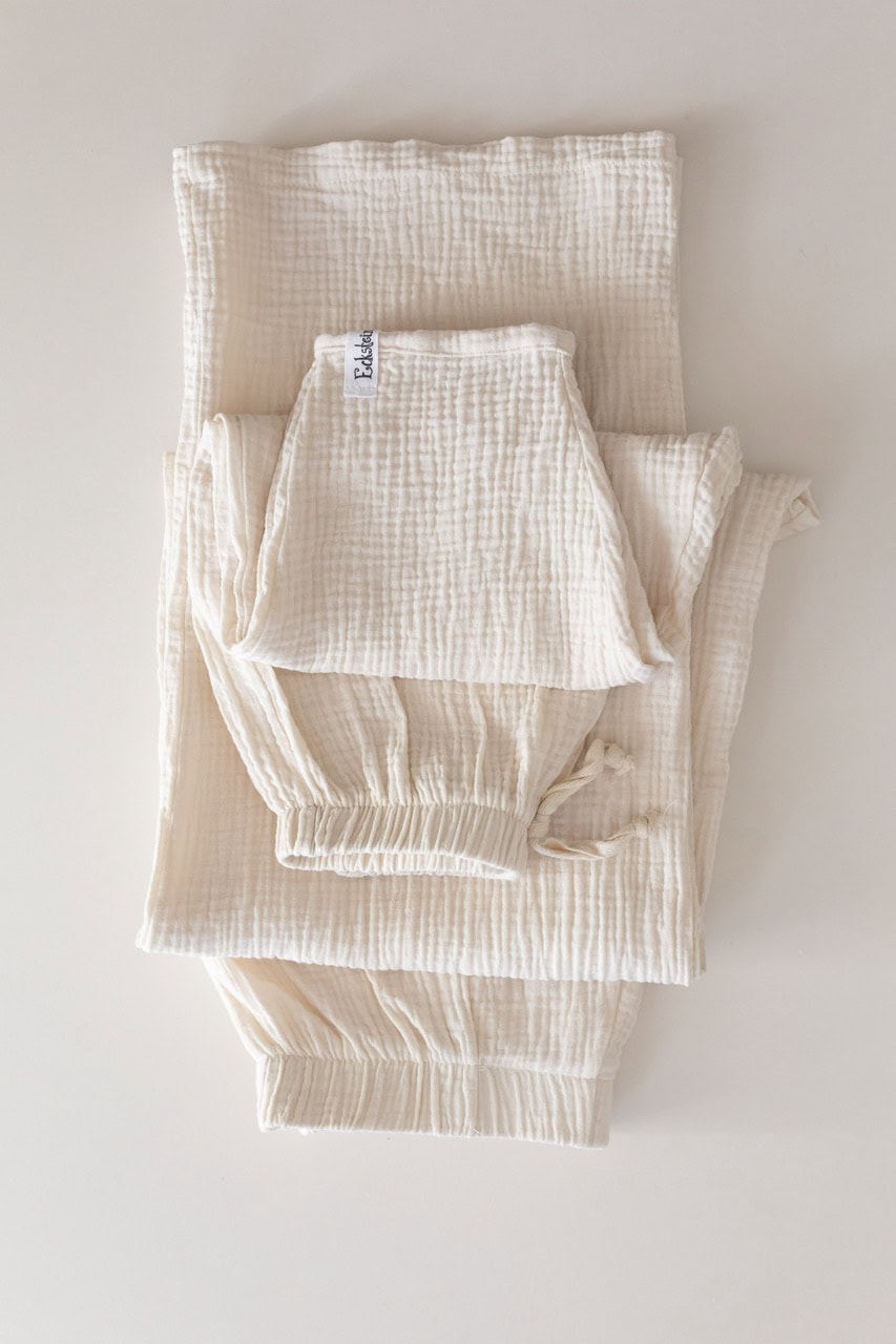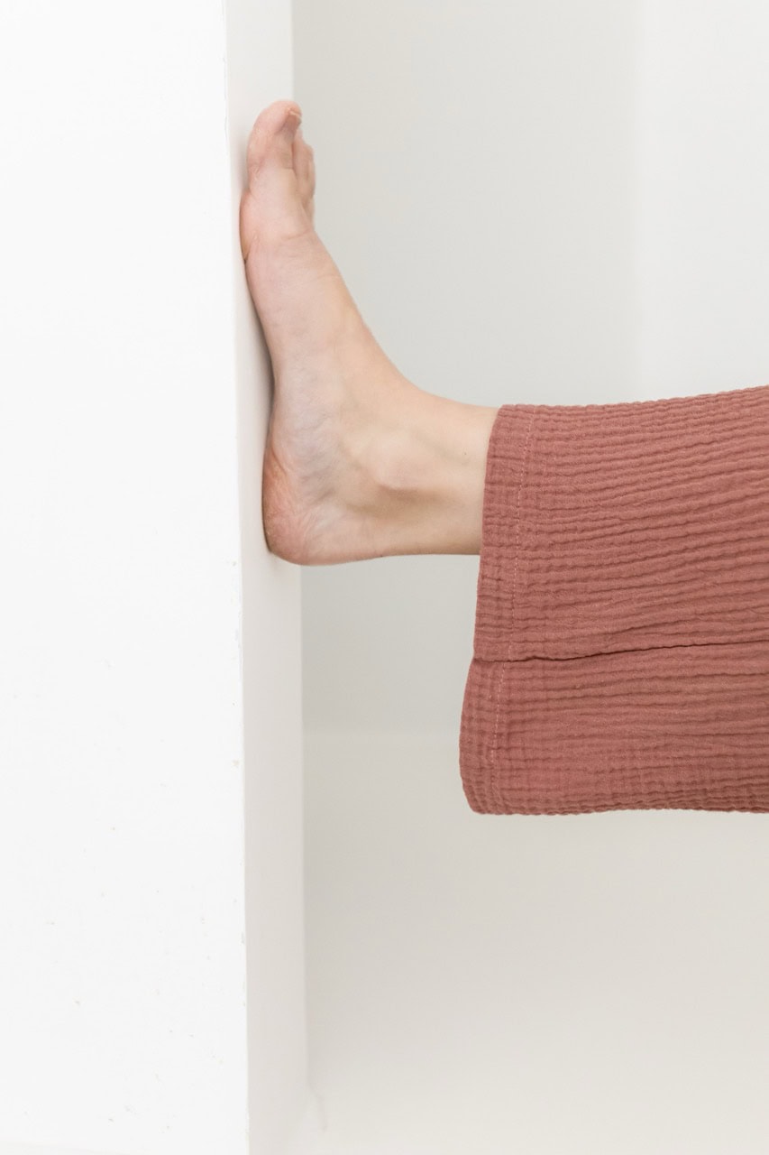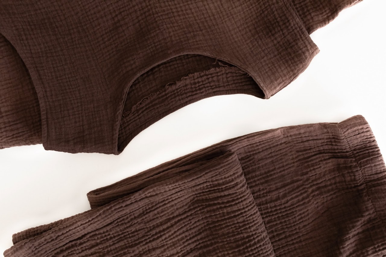 Die lockere Musselin Hose ist perfekt für warme Sommertage, kann aber auch jetzt und im Herbst schon gut getragen werden.