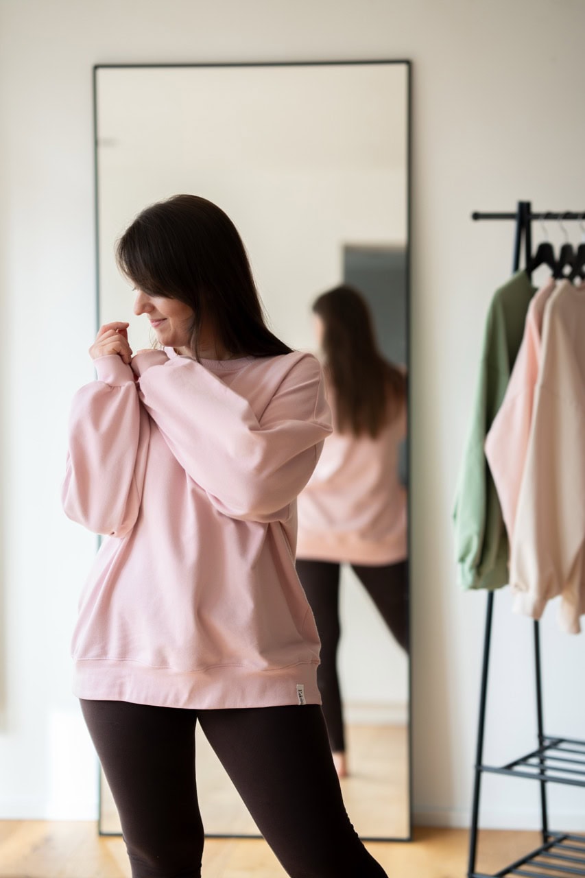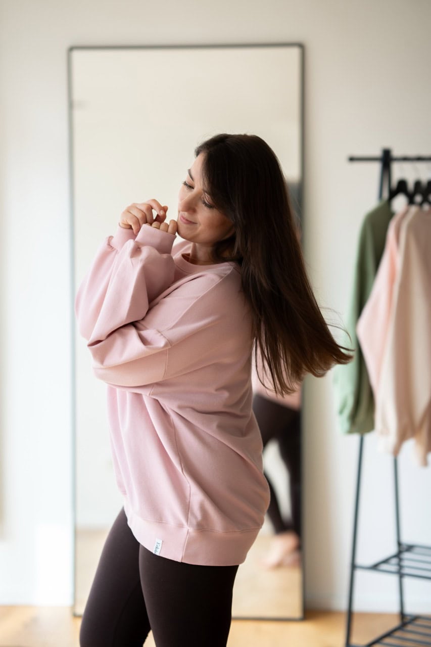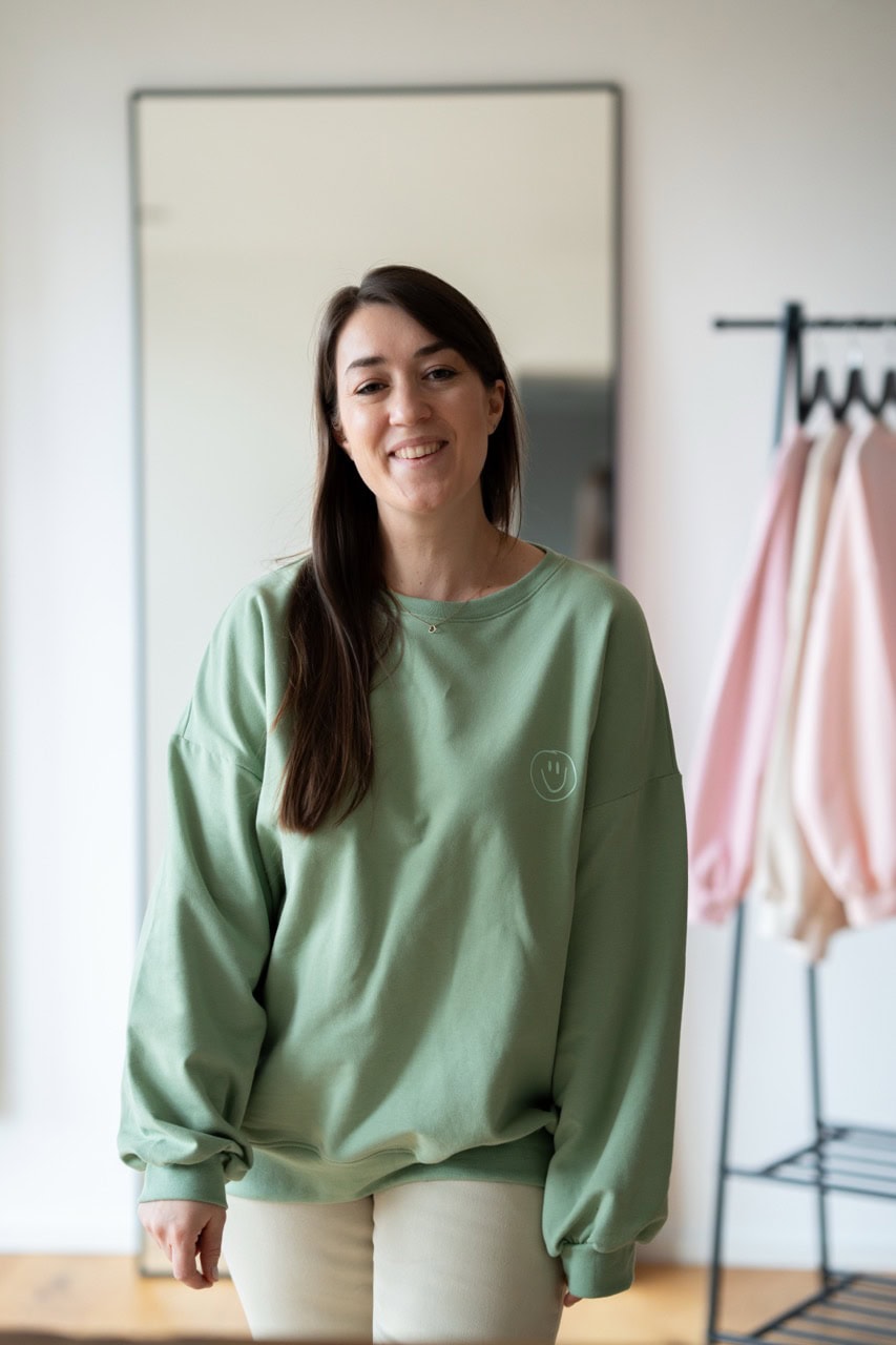Der Pullover fällt oversize aus. Siehe Bilder. Getragen wird auf den Bildern Gr. M bei einer Körpergröße von 1,69m.